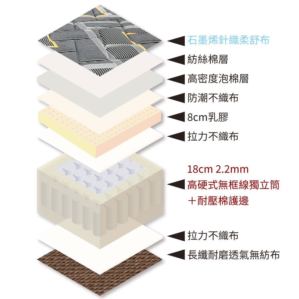 採用高品質乳膠,8CM提高整體包覆感,更浮貼人體曲線,均勻釋壓、避免腰酸背痛。