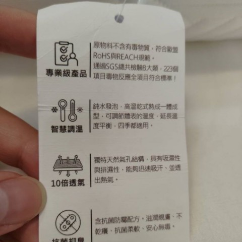 純水發泡,高溫乾式熟成,一體成型符合人體工學,特殊親水配方材質,可自動調節體表的溫度,延長溫度平衡,四季都適用。