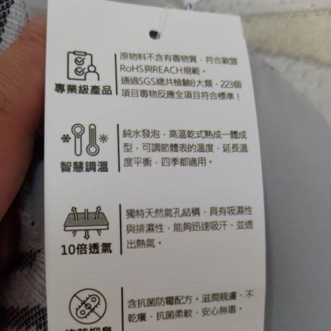 此種親水枕透氣度為110~120(cm³/cm²‧S)